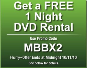 Blockbuster Express is also offering a new DVD movie code for one FREE rental, valid only on Monday, October 11, 2010.