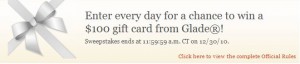 Target is giving away 100 $25 gift cards everyday through November 27, 2010. You can enter twice each day by visiting Target’s Facebook page and clicking on the Black Friday tab. Then click on the red enter today button, allow their application to access your data and complete the entry form.