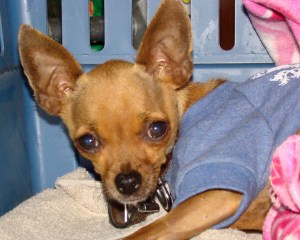 Last night when we arrived home for our day at work and summer camp, my daughter and I found a tiny, tiny emaciated female Chihuahua sitting on the sidewalk in our front yard. She immediately came to me with very little hesitation, her pencil thin tail slightly wagging.